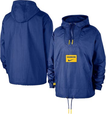 Men's Nike Royal Golden State Warriors Courtside Premium Club Anorak Quarter-Zip Hoodie Jacket