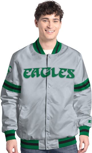 Embrace your Philadelphia Eagles spirit with this Starter Vintage Scout Full-Snap Varsity Jacket. This vintage-inspired jacket features bold embroidered Philadelphia Eagles graphics on the chest and back, showcasing your team pride in style. With its classic varsity design, rib-knit details, and lightweight construction, it's the perfect choice for milder weather.