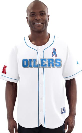 Channel the classic look of Houston Oilers history with this Starter Relay Vintage Full-Button Baseball Jersey. The button-up design features team color piping and an embroidered team logo at the left chest for a classic, sporty aesthetic. Constructed from 100% cotton, this Houston Oilers jersey offers a comfortable and breathable feel whether you're at the stadium or watching from home.