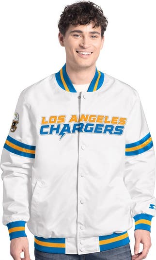 Show your Los Angeles Chargers pride with this Starter Scout Full-Snap Varsity Jacket. This stylish Los Angeles Chargers jacket features a classic varsity design with embroidered team details on the chest, sleeve and back. The rib-knit collar, cuffs and hem offer a comfortable and snug fit, while the lightweight construction makes it ideal for mild temperatures.