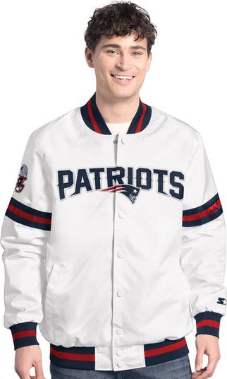 Show your New England Patriots pride with this Starter Scout Full-Snap Varsity Jacket. This stylish New England Patriots jacket features a classic varsity design with embroidered team details on the chest, sleeve and back. The rib-knit collar, cuffs and hem offer a comfortable and snug fit, while the lightweight construction makes it ideal for mild temperatures.