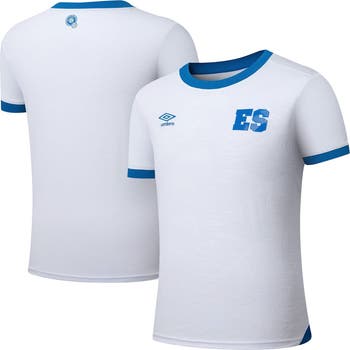 Cheer on the El Salvador National Team with this 2025 Away Replica Jersey from Umbro, a must-have for any dedicated fan. This replica jersey is crafted from featherweight, breathable fabric to keep you cool and comfortable whether you're cheering from the stands or playing on the pitch. The heat-sealed team logo at the left chest and screen print team crest at the back neck let you show your El Salvador National Team pride with every wear.