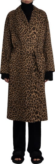 A fabulous leopard print brings wild attitude to an otherwise classic cotton trench coat framed by notched lapels and a removable tie belt.