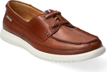 Two-tone leather elevates a classic boat shoe with SOFT-AIR Technology to ensure cushioned comfort and shock absorption.