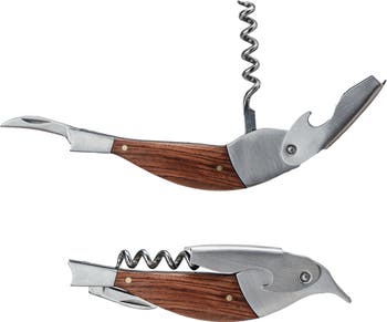 - A functional piece of art, this bird-shaped bottle opener is a natural beauty with its merbau wood finish