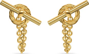 A high-polished toggle puts an elegant finish on these drapey chain earrings crafted from warm 18-karat gold.