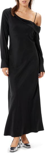 Elegant draping distinguishes the neckline of this long-sleeve dress featuring a single cold shoulder and A-line silhouette.