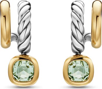 A sleek 18-karat-gold hoop sits side by side with a cabled sterling silver hoop on these drop earrings designed with a semiprecious-stone drop, fusing sculptural form and high-impact color.