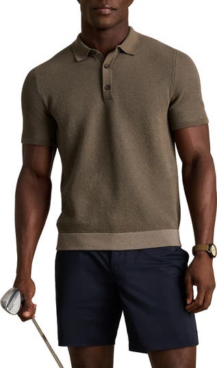 This short-sleeve polo turns texture into the main event with a honeycomb-like surface that adds dimension without loud contrast. Ribbed trim at the edges keeps it polished.