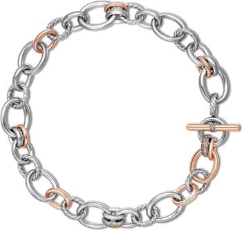 Sculpted rope links add a textural twist to this elegant two-tone necklace enriched by pavé cognac diamonds.