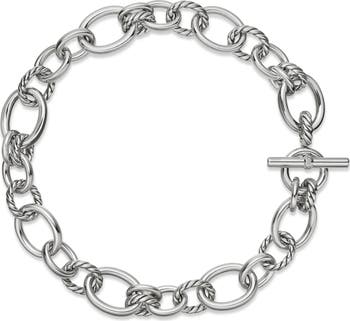 Sculpted rope links add a textural twist to this elegant sterling silver necklace featuring a toggle charm encircled with shimmering pavé diamonds.