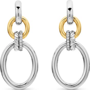 Polished links of sterling silver and 18-karat gold connect these loopy drop earrings enhanced by a splash of pavé diamonds.