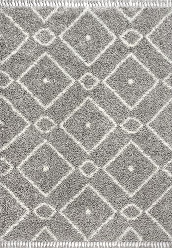 Mercer Shag Plush Tassel Moroccan Diamond Denim Area Rug