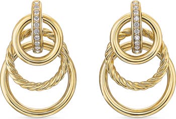 Mercer® Triple Ring Drop Earrings in 18K Yellow Gold with Diamonds, 35.6mm