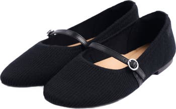 GOBI Cashmere's ballet flats combine merino wool and cashmere for warmth, dryness, and comfort. Featuring a PU foam material with arch support and recycled rubber for lightness and breathability. It includes knit and leather insoles and a leather strap buckle closure for easy adjustment.