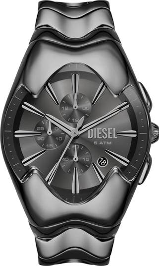 Molten-look stainless steel and softly shaped framing bring a look of controlled melt to this chronograph watch that uniquely balances form and function.