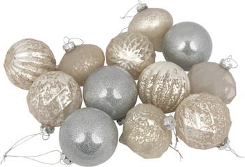 Mercury Glass Style Glass Christmas Ornament Set - 3" - Silver and Champagne - 12ct