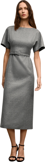 What to wear when you want to channel Amal Clooney. This elegant number features a boat neck, dolman sleeves, and a straight, midi-length skirt. A removable belt provides built-in styling.
