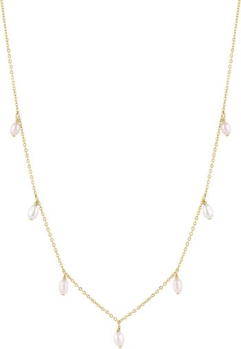Incandescent pearls delicately drape from the polished chain of this elegant necklace that brings a low-key glow to any look.