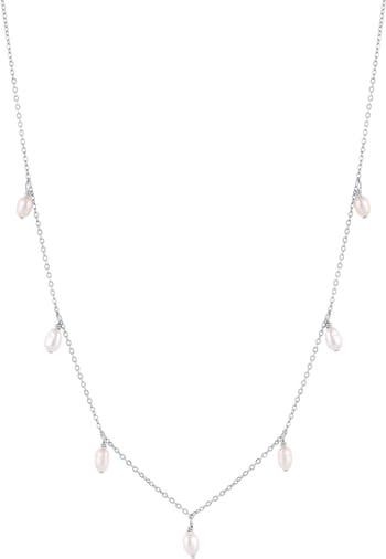 Incandescent pearls delicately drape from the polished chain of this elegant necklace that brings a low-key glow to any look.