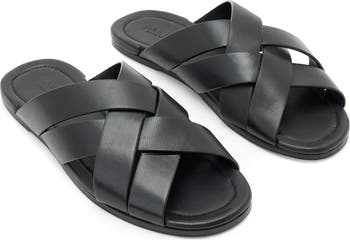 Hand-woven straps intensify the refinement of this essential sandal fashioned from smooth Italian leather.