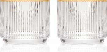 With stunning clarity and a rippled texture, this pair of stackable gold-rimmed tumblers are ideal for spirits on the rocks or lowball cocktails. The weighted base and rounded silhouette give each glass unique elegance that enhances your home bar or glassware collection.