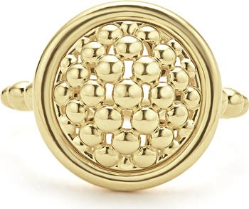 Signature beading is warmed by 18-karat gold in this textured ring finished with logo engraving.