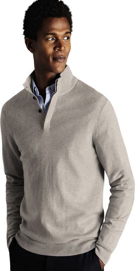 This high-neck Sweater is sleek and understated. To make it a versatile option, we've given it a cleverly concealed button placket. Crafted from a blend of supersoft fibres – 90% Woolmark-certified Merino combined with 10% luxurious cashmere – it's a winter-wardrobe essential that delivers warmth and a refined finish. The classic navy shade is the perfect partner for neutral-coloured chinos. Thanks to a garment wash, this style is also smooth to the touch. Flat-lock stitching around the cuffs and hem completes the neat, modern look.