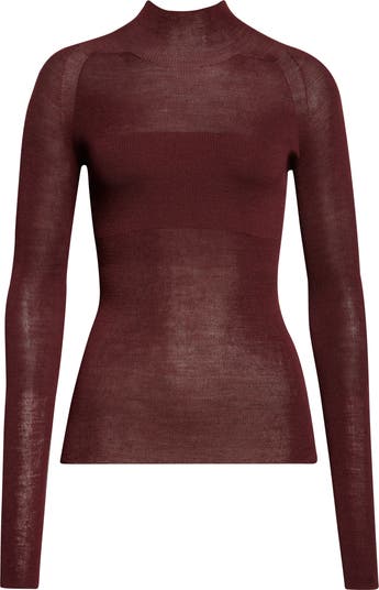 A diminutive Medusa stud at the back brings understated branding to this mock-neck sweater rib knit from fine-gauge yarns in a merino-wool blend.