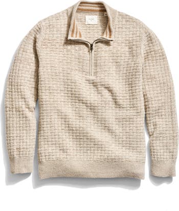 Merino Wool & Cotton Basketweave Half Zip Sweater