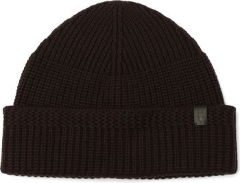 A wide cuff locks in warmth on this ribbed merino wool beanie minimally branded with the signature AllSaints Ramskull—a symbol of strength and subversion since its 1994 debut.