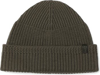 A wide cuff locks in warmth on this ribbed merino wool beanie minimally branded with the signature AllSaints Ramskull—a symbol of strength and subversion since its 1994 debut.