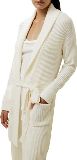 Adorned with an exquisite rib pattern design and a timeless shawl collar, this impeccably versatile Merino wool cardigan complements any occasion. Experience pure relaxation in the comfort of your home or express your personal style at refined gatherings.