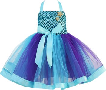 Make her mermaid dreams come true with this stunning mermaid tutu dress. Featuring charming details like a sparkly halter top and flowy tulle skirt, it's the perfect piece to add magic to her wardrobe. Pair with casual sandals for an adorable spring/summer outfit.