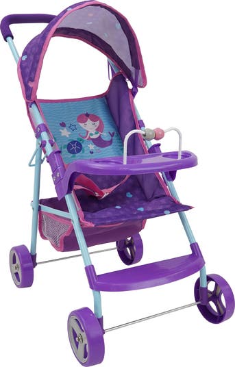 Mermaid Doll Stroller W/ Canopy & Cup Holder