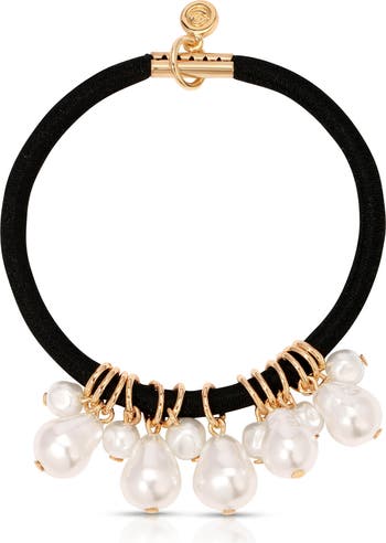 Clusters of luminous imitation pearls dangle from this holder that instantly elevates your polished ponytail.