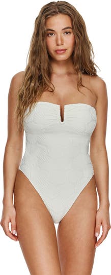 Channel your inner mermaid in the Mermaid Island Textured Bandeau One Piece, crafted in textured seashell fabric with a U-wire insert and removable soft cups for support where you want it. Adjustable, removable straps and fully lined front and back with classic bottom coverage keep you feeling confident and comfortable while turning heads from pool to beach.