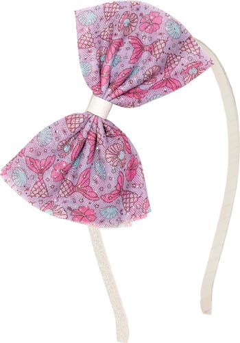 - Features: Mermaid splash printed tulle bow with silver glitter pin dot accents.