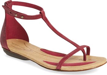 A barely there T-strap thong sandal packs a ton of comfort features, including a Merrell air-cushion pillow in the heel, a cushy EVA footbed, a supportive metal arch shank and M Select™ GRIP technology in the sole for added traction and durability.