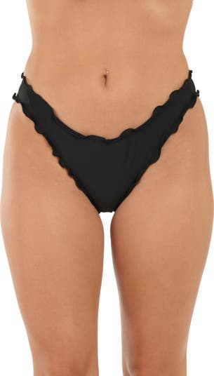 Frilly and flirty, these cheeky bikini bottoms styled with a shirred back are perfect for fun in the sun.