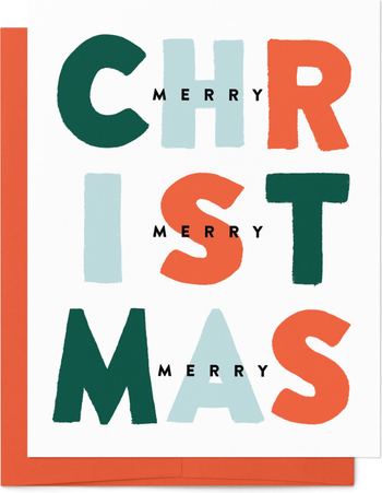 Merry Christmas Colorful Hand-Lettered Boxed Set of 8 Cards
