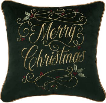 Celebrate the holidays in style with this 16" x 16" embroidered accent pillow featuring the cheerful phrase "Merry Christmas" in golden swirling typography surrounded by classic holly leaves and red berry details. Designed to bring warmth and sophistication to your seasonal décor, this pillow makes a perfect addition to sofas, armchairs, beds, or entryway benches. The shimmering embroidery creates a premium, festive look that stands out in both casual and formal holiday settings. Its versatile square shape and timeless design allow it to complement existing décor while adding a fresh seasonal update. Crafted with durable materials and quality stitching, this pillow is built to last and will remain a cherished part of your Christmas collection year after year. Beyond being a decorative accent, it also makes a thoughtful holiday gift for family, friends, or hosts, offering a meaningful way to share festive joy and timeless holiday style.