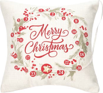 - Add holiday cheer to your home with this “Merry Christmas” wreath accent pillow, featuring a movable gold star that marks each day of Advent. The festive design brings traditional charm to your seasonal decor.