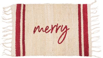 Made from very sustainable Jute material, carol & frank's holiday jute rugs help celebrate the season in style. The biodegradable material features modern stripes in trendy colors that look beautiful when paired with the script writing and fringe details, making it an ideal, natural looking accent piece for any home.