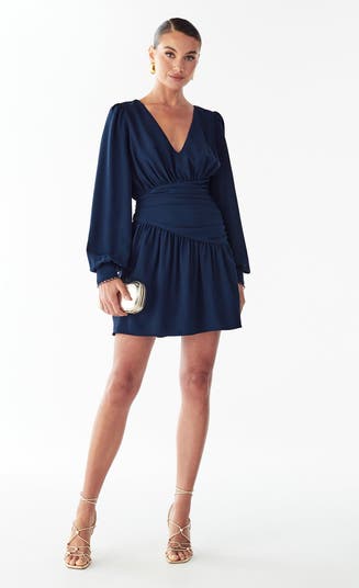 The Merry Mini Dress by BWLDR is a sophisticated navy mini dress designed for modern evening elegance. Its dramatic balloon sleeves and plunging neckline create a bold yet refined statement, perfect for transitioning from cocktail hour to late-night celebrations.