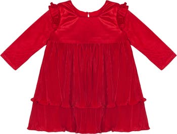 Celebrate the season in the Merry 'n' Bright Dress, a stunning red velvet creation. This dress features playful ruffled shoulders and layered pleated satin skirt that twirls delightfully. Its rich, vibrant red shade makes it an ideal choice for holiday photos or festive gatherings.