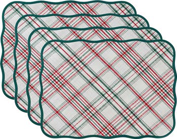 Make your holiday meals and festive gatherings a bit more celebratory with the classic tartan of these placemats. Framed with a playful scalloped edge, the bias weave adds a fun pop of pattern that brings your tablescape to life.