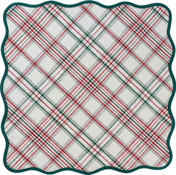 Scalloped edging and the season's favorite colors charm this plaid tablecloth that brings a cheery touch to your table.