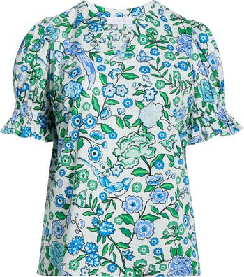 Crisp cotton poplin lends breathable structure to this puff-sleeve top made with smocked cuffs.