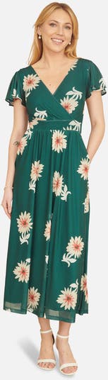 This mega charming midi dress is crafted from a lightweight mesh fabric with stretch for a comfortable and chic fit. With fluttery sleeves framing the cinched waist and wrap over neckline, The oversize flower print is gorgeous and we added pockets! Perfect for special occasions or holiday dressing.